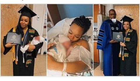 Photos show the mom did not miss the action, as the university brought the graduation experience to her at the labour