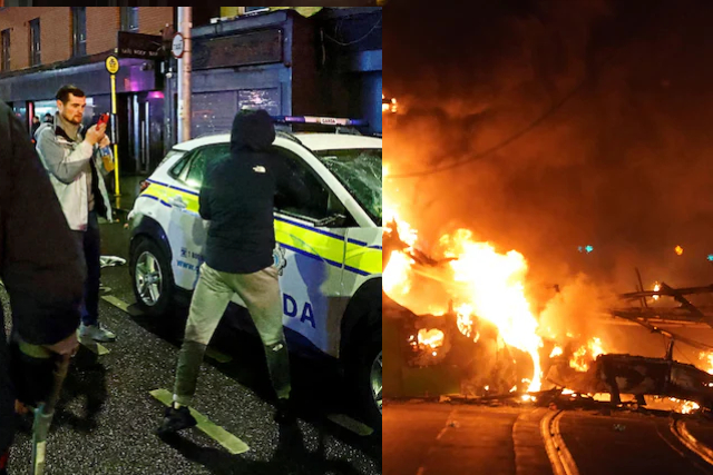People the police later described as far-right protesters disrupted the crime scene, chanting anti-immigrant slogans and took to the streets of Dublin, setting vehicles ablaze and clashing with police.
